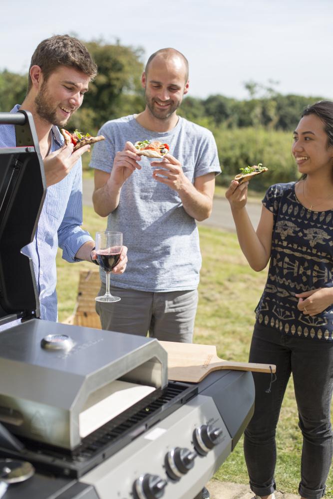 Vstavaný pizza kameň zvládne pizzu až do priemeru 30 cm. A aby sa vám lepšie strážilo pečenie, pec má aj integrovaný teplomer. Jednoducho ju položíte na rošt, necháte nahriať a môžete piecť – bez zdĺhavej prípravy.