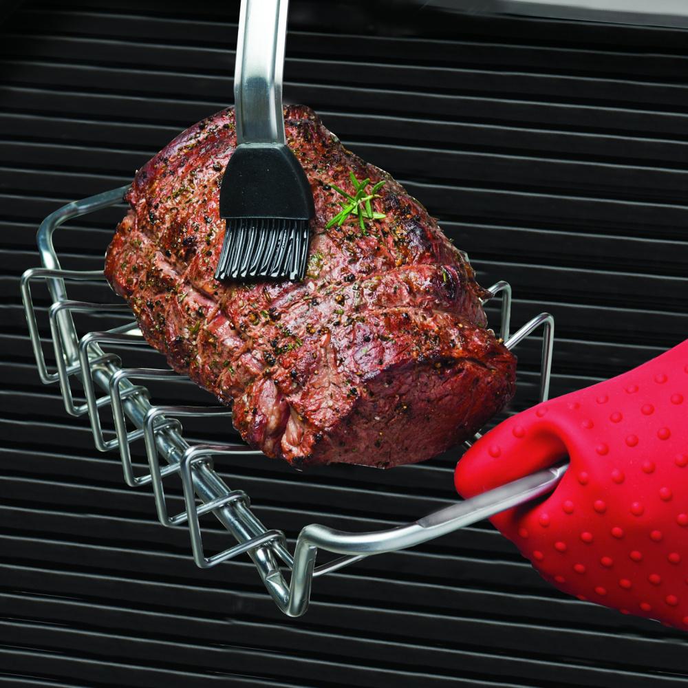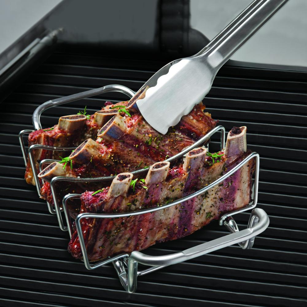 Vďaka stojanu sa rebierka ľahko a rýchlo prepečú a zabránite ich pripáleniu na grilovacom rošte