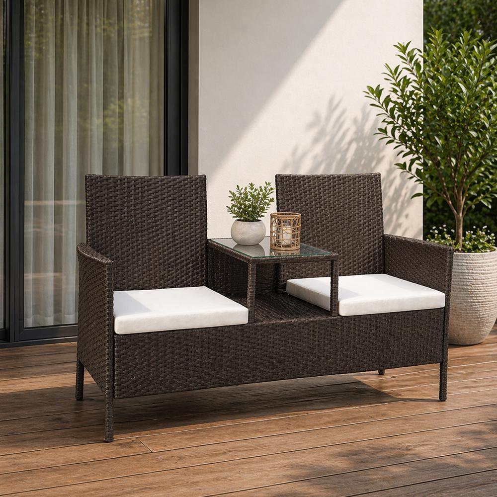 | Polyratanová lavica so stolíkom – ideálna na záhradu, terasu aj balkón | |