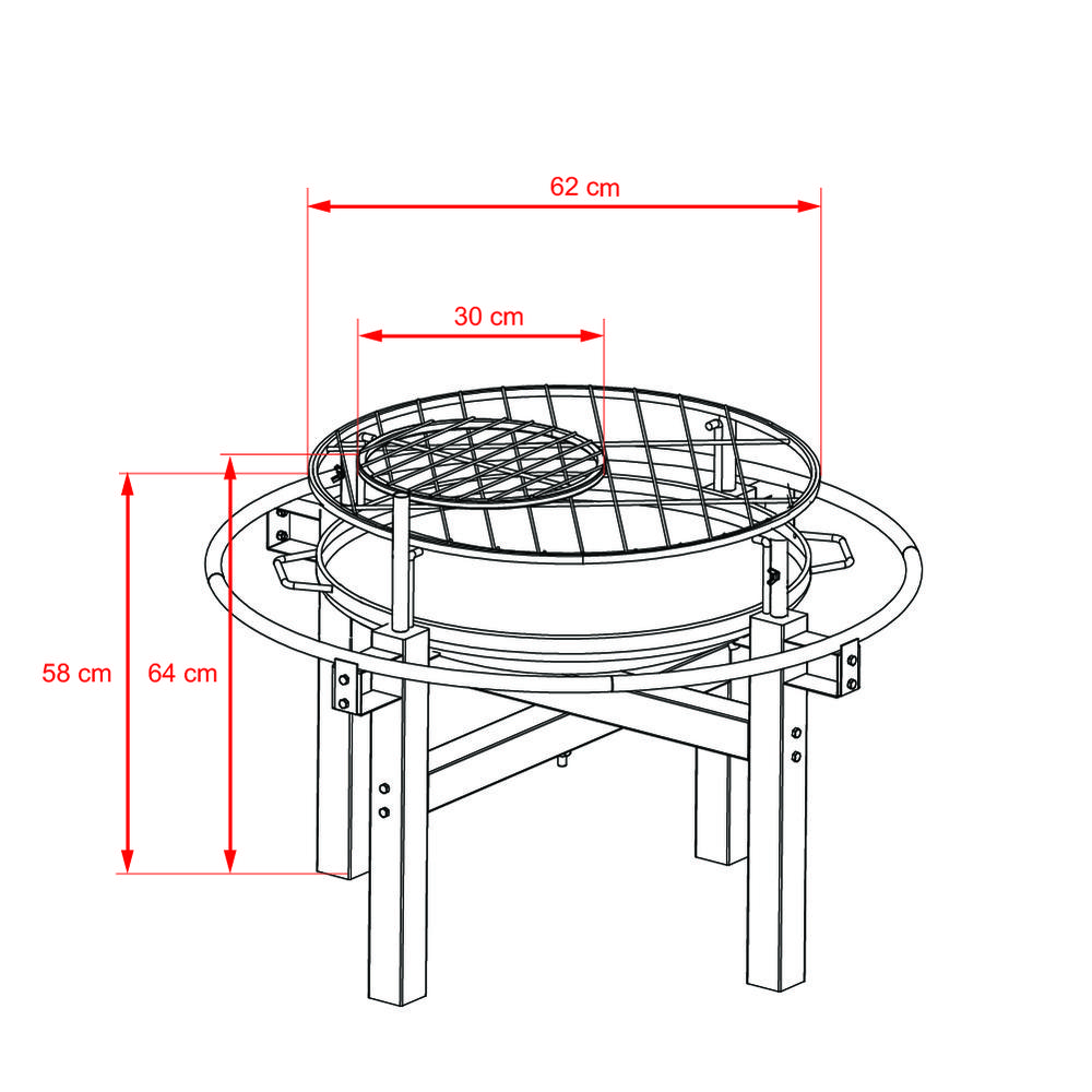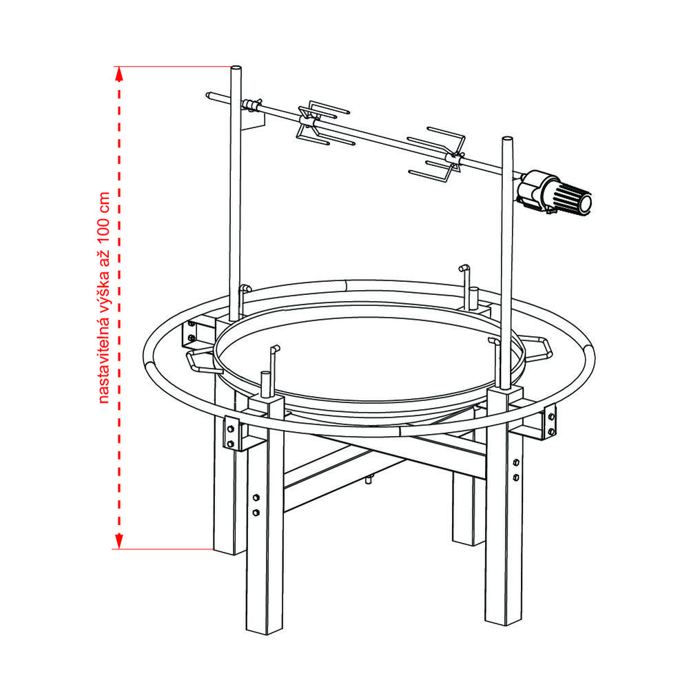 Grilovacia otočná ihla s elektrickým motorom a vidlicami na uchytenie hydiny Výsuvná – vyberateľná teleskopická konštrukcia, nastavenie výšky výsuvu skrutkou s krídlovou hlavou, maximálna výška : 100 cm Jednoduchá montáž, údržba a čistenie Batéria 1,5V typu D - nie je súčasťou balenia ohniska Návod na obsluhu v slovenskom jazyku, záruka 24 mesiacov