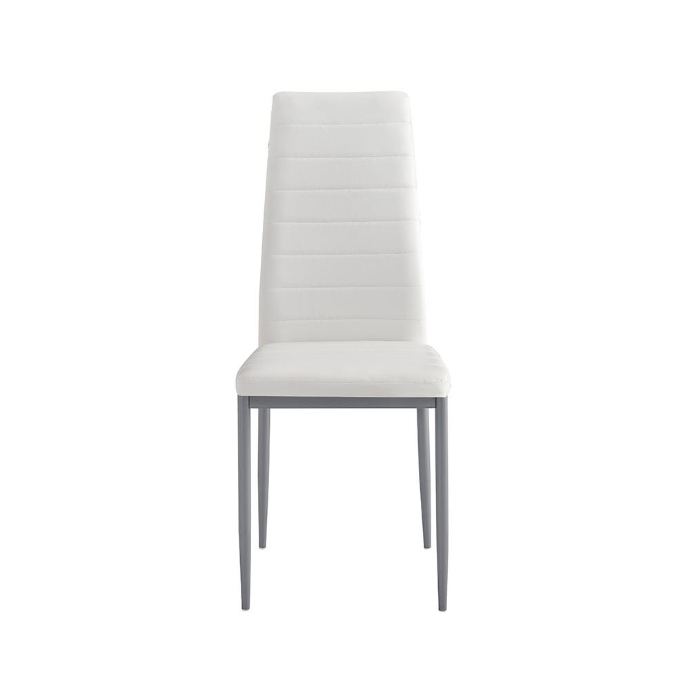 Set sa skladá zo skleneného stola a štyroch pohodlných stoličiek s mäkkým čalúnením, takže si v pokoji vychutnáte raňajky, rodinnú večeru aj nedeľnú kávu. Ergonomické tvarovanie operadiel a príjemný povrch eko-kože zaistí pohodlné sedenie, či už pri