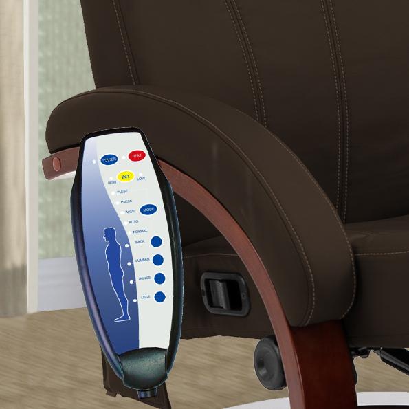 Kreslo je hrubo čalúnené pre optimálny komfort. Je vybavené masážnymi uzlami, ktoré boli navrhnuté tak, aby upokojili váš chrbát. Operadlo a podnožka môžu byť nastavené do polohy, ktorá je vám najviac pohodlná. Priložené diaľkové ovládanie si môžete uložiť do vrecka na boku masážneho kresla.