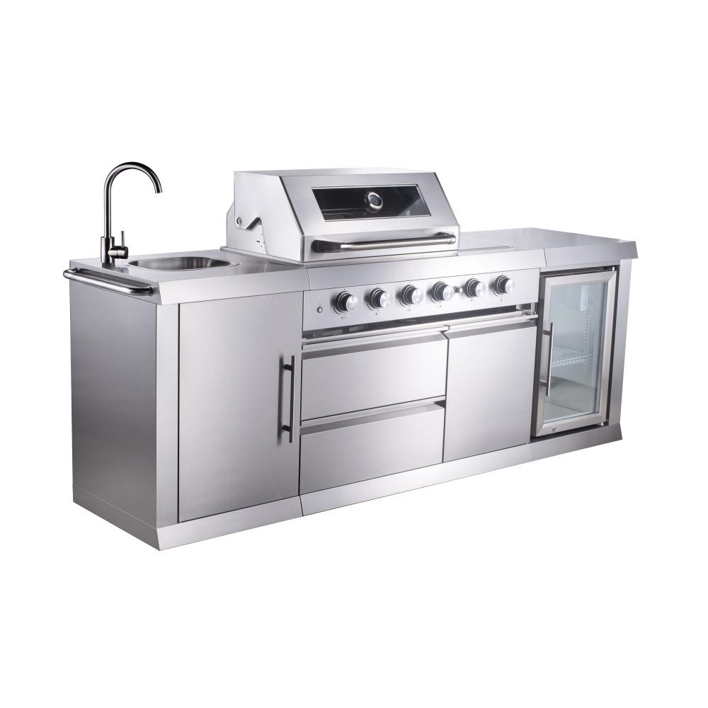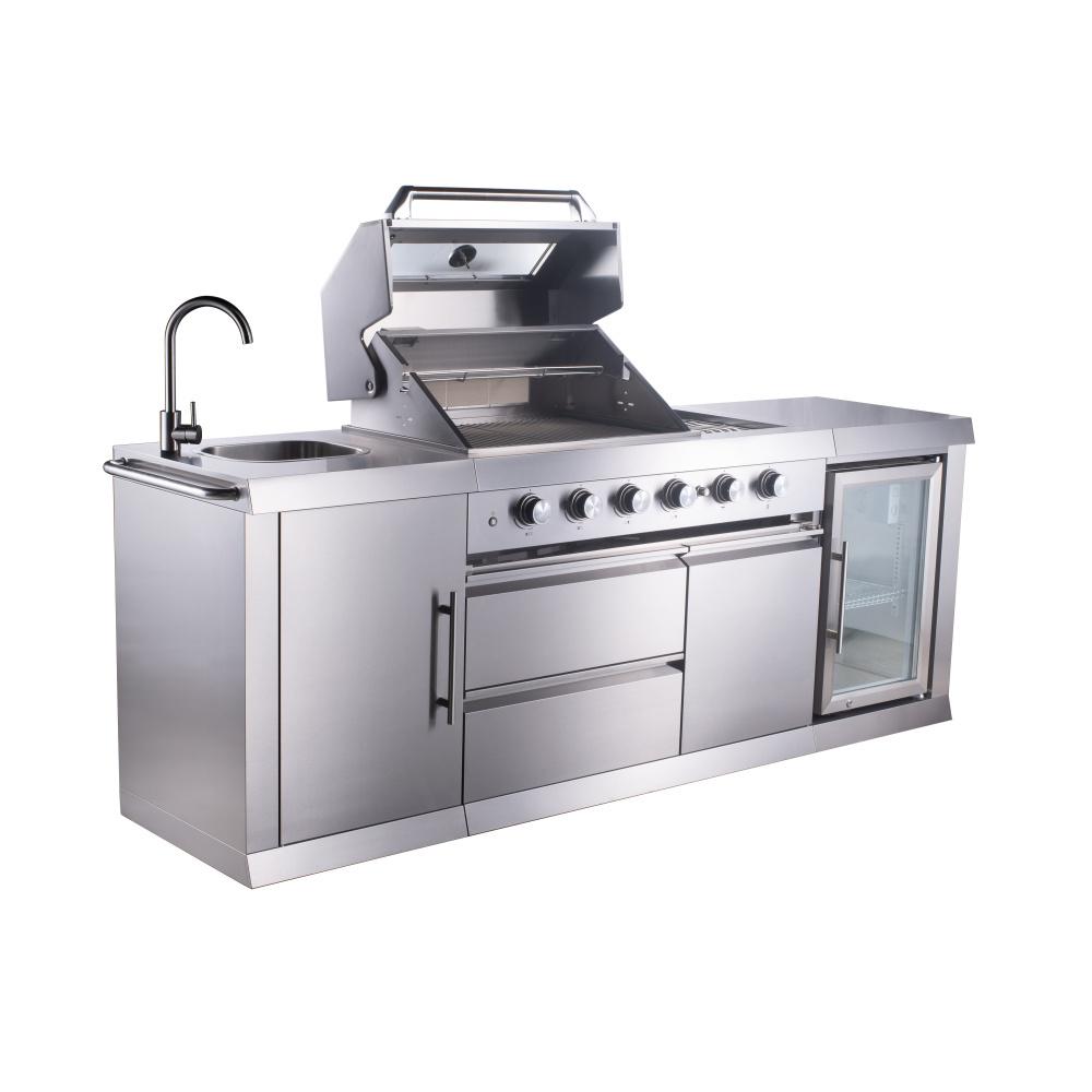 grilovanie, ale môžete sa postarať aj o prípravu, krájanie a vďaka vstavanej chladničke udržať nápoje krásne vychladené. Po hostine potom ľahko umyjete riad v praktickom dreze.