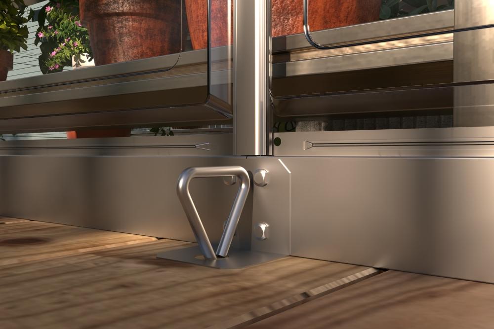 Jednoduchá montáž a stabilita Pre maximálnu stabilitu odporúčame umiestnenie skleníka na pevný povrch, ako je betónová alebo dláždená terasa. Súčasťou balenia je pozinkovaná základňa zadarmo (v hodnote 59,95 €), ktorá nahrádza podmurovku a uľahčuje montáž