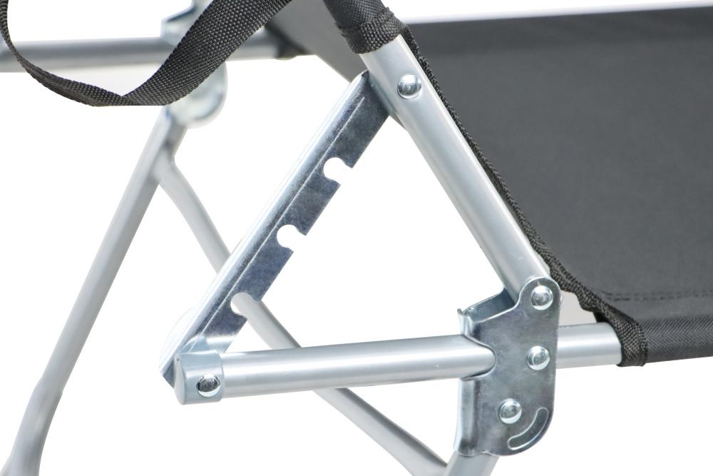 Práškovo potiahnutý statívový oceľový rám poskytuje konštrukciu s jednoduchou údržbou, extrémnu stabilitu a ochranu pred naklonením. Jednoduchý skladací mechanizmus, ideálne rozmery balenia a praktické držadlá robí z ľahkých lehátok ideálnu voľbu na cestách.