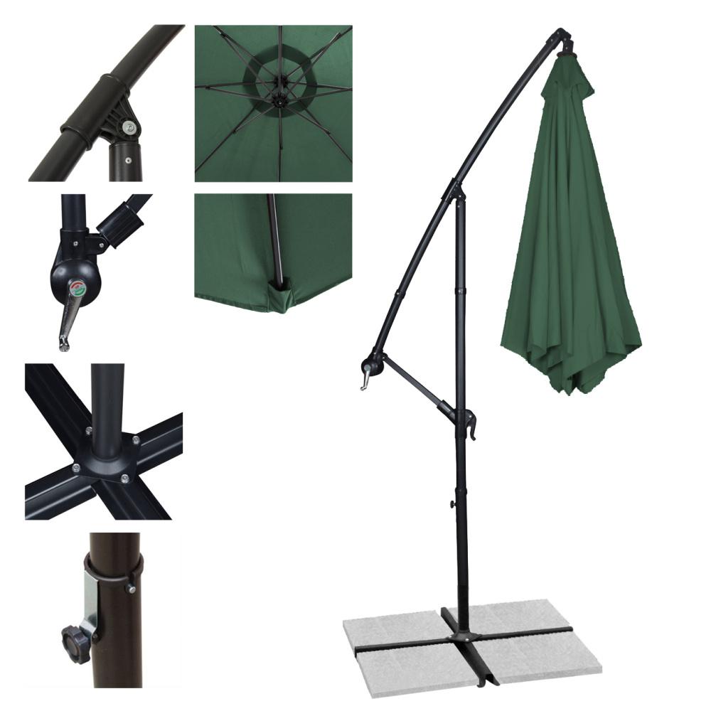 Slnečník je z odolného polyesteru v tmavo zelenej farbe, ktorý vyniká svojou odolnosťou proti poveternostným vplyvom a jednoduchou údržbou.