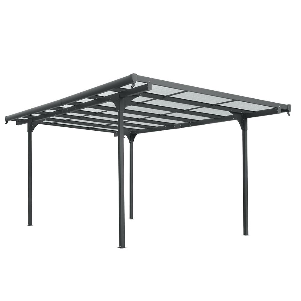 Prístrešok Avenberg PENTAGON ponúka optimálne riešenie na ochranu vášho vozidla pred nepriaznivými poveternostnými podmienkami. S jeho moderným dizajnom a šedou farbou Antracite RAL7016 sa toto zastrešenie pre auto stane nielen praktickým, ale aj esteticky príťažlivým doplnkom vašej záhrady. Pozinkovaná oceľová konštrukcia zaisťuje vysokú pevnosť a odolnosť proti korózii, zatiaľ čo polykarbonátové dosky chránené proti UV žiareniu chránia vaše vozidlo pred škodlivým slnečným žiarením a nepriaznivými poveternostnými podmienkami. Vďaka svojim rozmerom poskytuje prístrešok pre auto dostatočný priestor pre väčšinu typov automobilov. Odkvapový systém účinne odvádza dažďovú vodu, čím prispieva k dlhodobej ochrane prístrešku aj zaparkovaného vozidla.