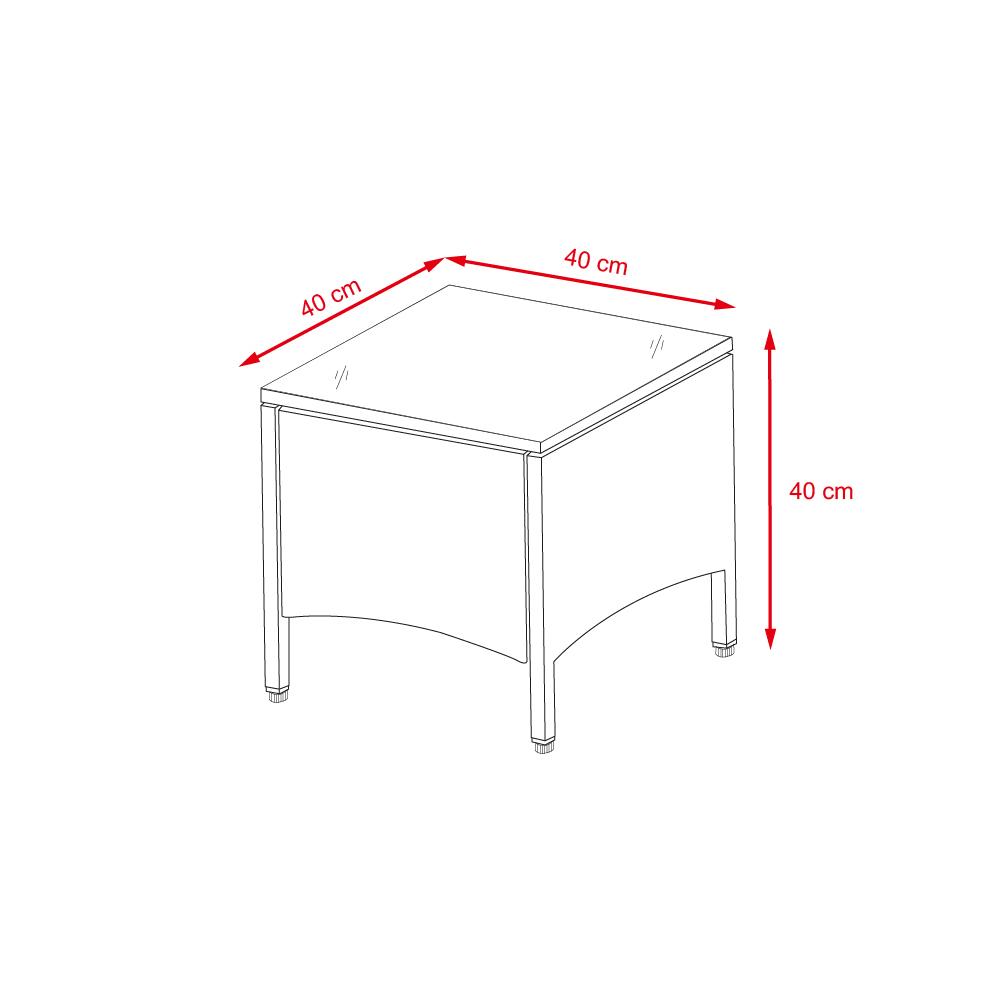 1 x stolík: 40 x 40 x 40 cm s tvrdeným sklom |