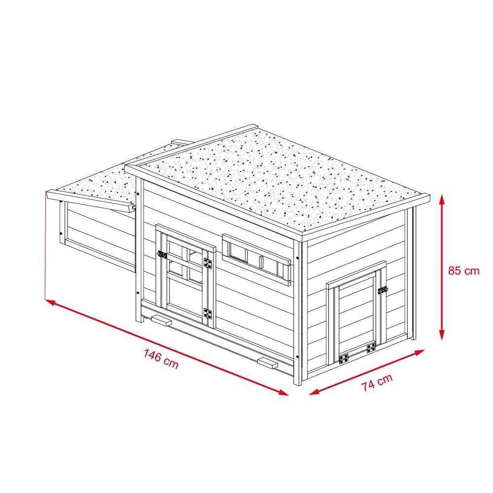 Kurník DORIS má rozmery 146 x 74 x 85 cm a je navrhnutý tak, aby poskytoval dostatok priestoru pre vašu hydinu. Vnútorné usporiadanie zahŕňa hniezdisko, ktoré je ideálne na znášanie vajec. Kurník je vďaka svojim rozmerom a konštrukcii ideálny predovšetkým ako miesto na spanie a prístrešok, kde sú sliepky chránené pred nepriaznivým počasím aj predátormi.