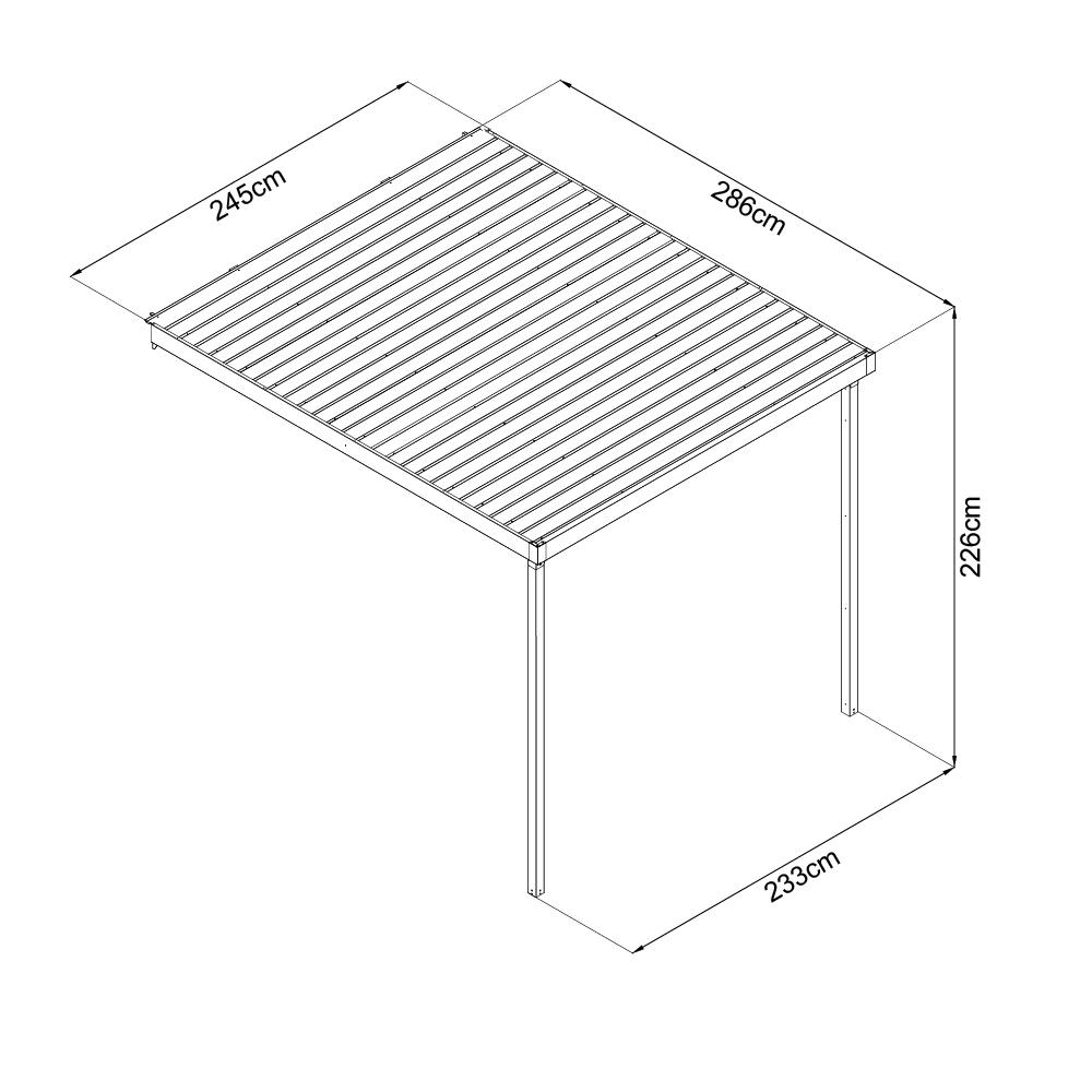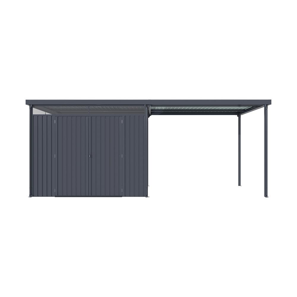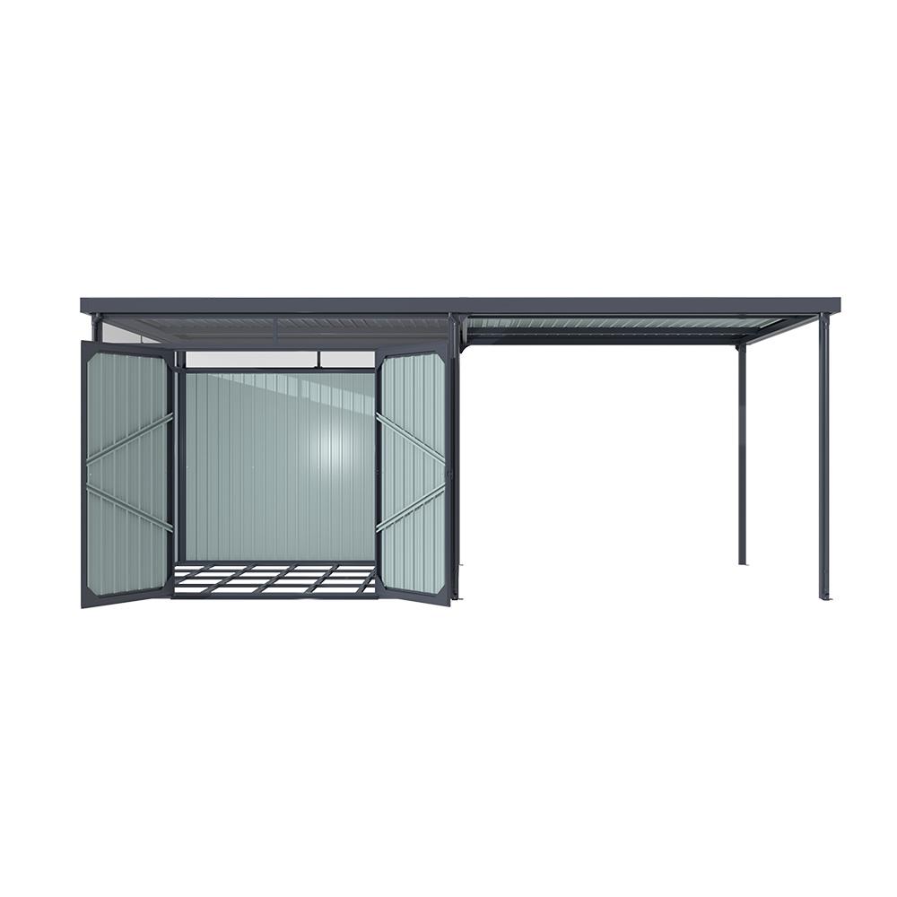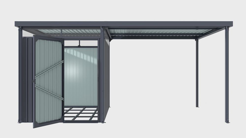 Táto prístavba má rozmery 245 x 286 x 226 cm, čo poskytuje dostatok priestoru pre pohodlné zaparkovanie auta alebo vytvorenie príjemného posedenia na záhrade. Vďaka modernému dizajnu a antracitovej farbe RAL7016 bude skvele ladiť s akýmkoľvek záhradným domčekom Avenberg MAGNUS.