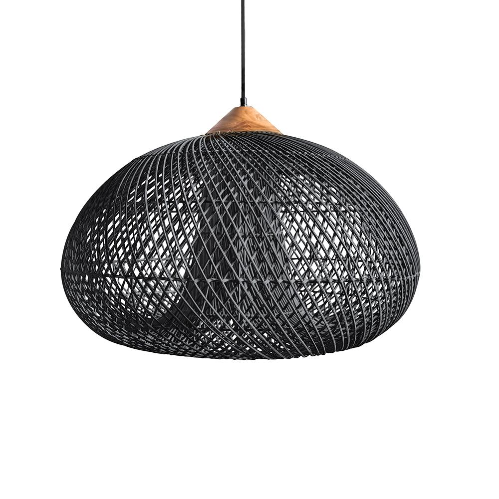 Závesná lampa z ratanu a dreva – čierna elegancia, ktorá rozžiari váš domov!