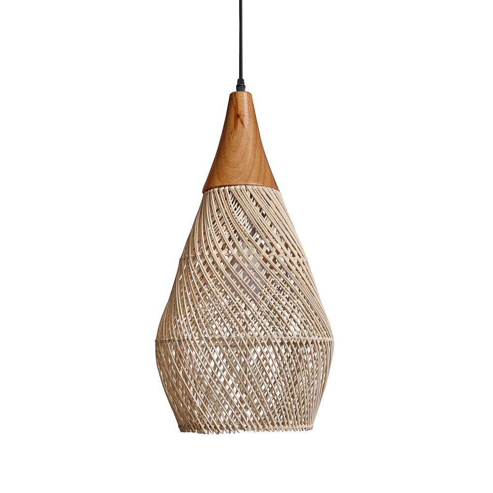 Závesná lampa z ratanu a dreva – prírodná elegancia v kompaktnom a štíhlom prevedení!