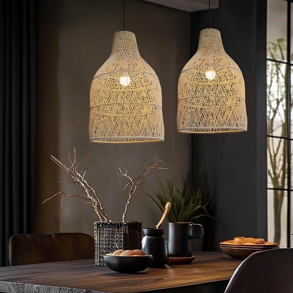 Táto závesná lampa je dokonalou voľbou pre tých, ktorí chcú prepojiť prírodnú krásu s moderným designom. Kombinácia kovovej konštrukcie s jemnými prvkami ratanu a bambusu prináša jedinečný štýl, ktorý oživí každý interiér. Ideálne pre spálne, jedálenské kúty alebo menšie obývacie priestory.