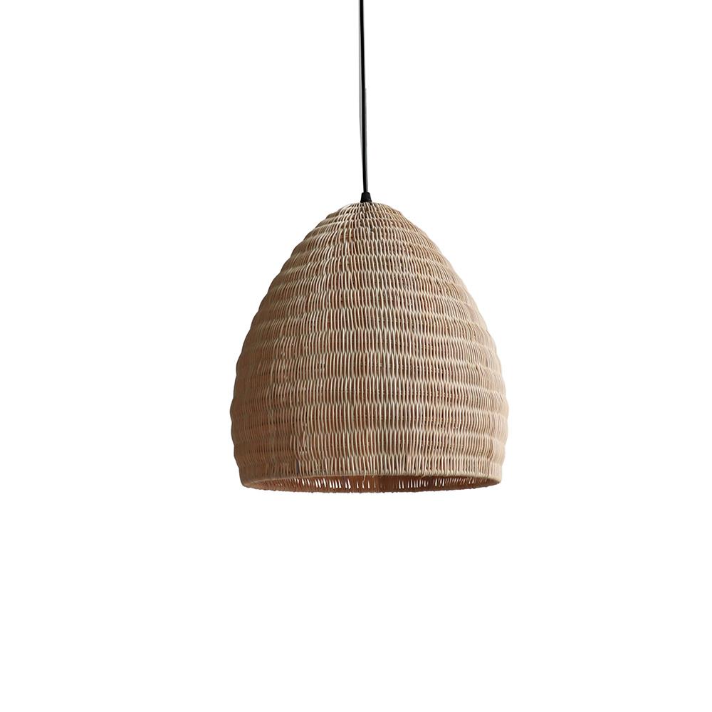 Táto malá, ale štýlová závesná lampa v sebe spája moderný dizajn s prírodnými materiálmi. Vďaka kombinácii kovu, ratanu a bambusu je perfektným doplnkom pre útulné priestory, ako sú spálne, menšie