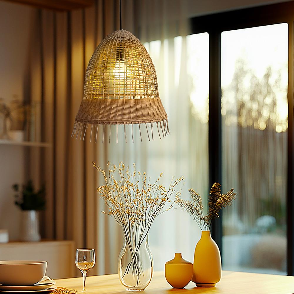 Závesná lampa z kovu, ratanu a bambusu – prírodná elegancia pre každý interiér!