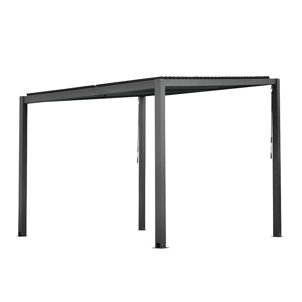Pergola je vyrobená z prémiových materiálov, ktoré zaisťujú jej dlhú životnosť a jednoduchú údržbu. Hliníkový rám s práškovým nástrekom poskytuje odolnosť voči poveternostným podmienkam a pridáva konštrukcii moderný vzhľad. Nerezové konektory a kotvy zaisťujú maximálnu stabilitu a pevnosť. Farba v šedom odtieni (RAL7024) dodáva pergole nadčasovú eleganciu, ktorá sa hodí do každého vonkajšieho priestoru.
