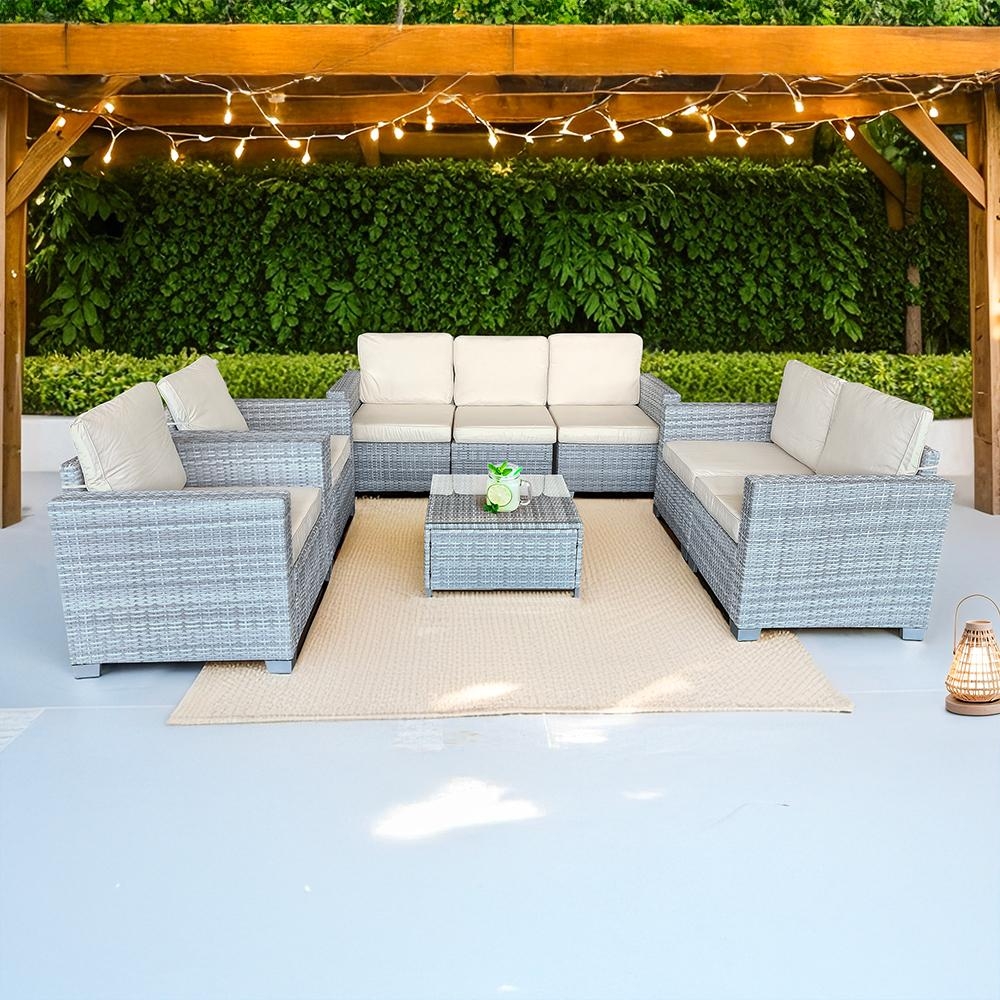 Veľká záhradná sedacia súprava Avenberg DORADA – elegantný šedý ratan so šedými poduškami