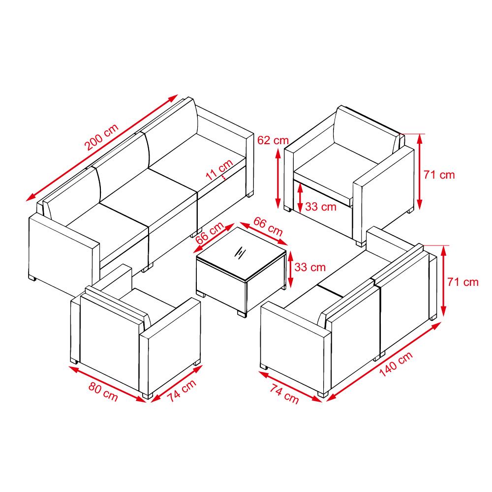 8-dielna modulová zostava je navrhnutá pre pohodlné posedenie až 7 osôb. či už si dáte kávu, prečítate knihu alebo jednoducho len odpočívate.