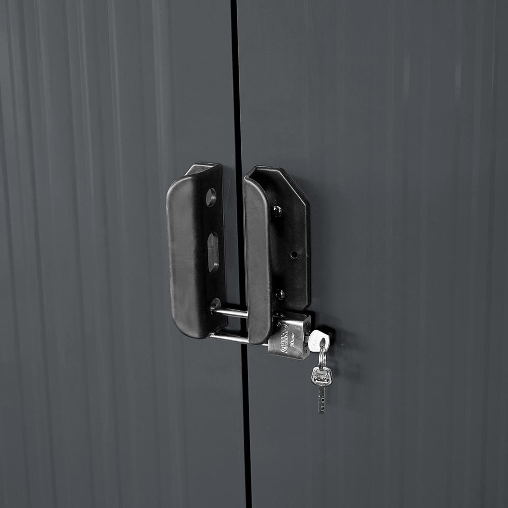 Kovový záhradný domček AVENBERG SD-YX48-H154C v elegantnej antracitovej farbe je ideálnym riešením, keď už garáž ani pivnica nestačí.