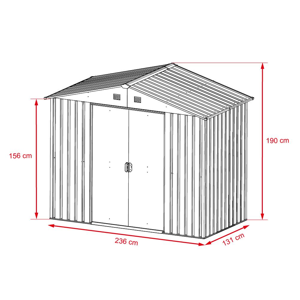 236 × 131 × 190 cm ponúka dostatok priestoru na uloženie všetkého potrebného. Konštrukcia z