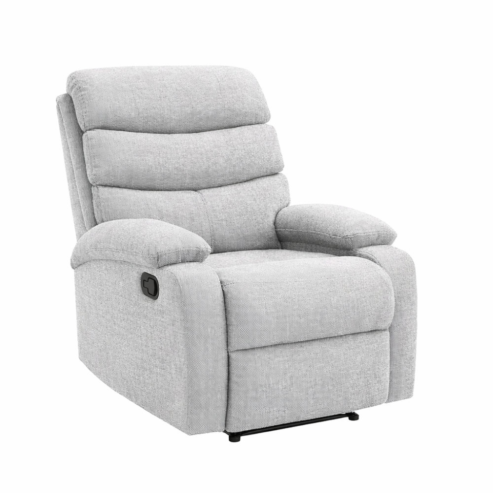 Kreslo ľahko prispôsobíš svojej polohe vďaka manuálnemu polohovaciemu systému – stačí zatiahnuť za bočnú páčku a opierka chrbta sa spolu s podnožkou elegantne prispôsobí tvojmu telu. Pohodlné lakťové opierky a mäkké vysoké operadlo chrbta ti dajú presne to, čo od