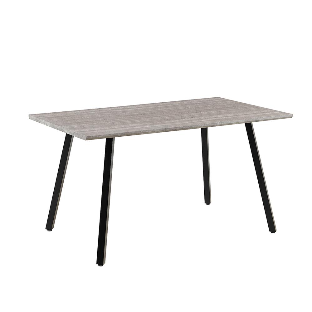 Stôl s doskou v sivom dekore na robustnej čiernej kovovej nohe tvorí pevný a štýlový základ. MDF doska s hrúbkou 25 mm je opatrená melamínovou fóliou, ktorá je odolná a jednoduchá na údržbu.
