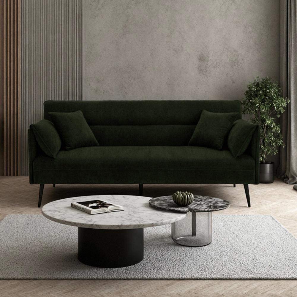 Štýlová, pohodlná a múdra – rozkladacia pohovka AMELIA je zásah do čierneho (alebo skôr zeleného) pre každý moderný interiér. Cez deň elegantná 3-miestna