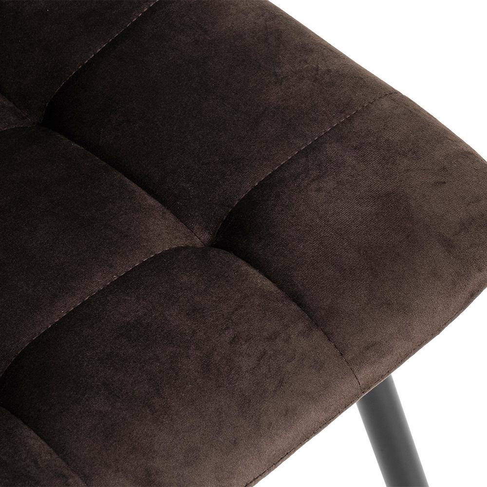 dark brown velvet (Cowboy 800). Čierne kovové nohy s práškovým nástrekom ladia s konštrukciou stola a podčiarkujú moderný štýl. Sedák tvorí