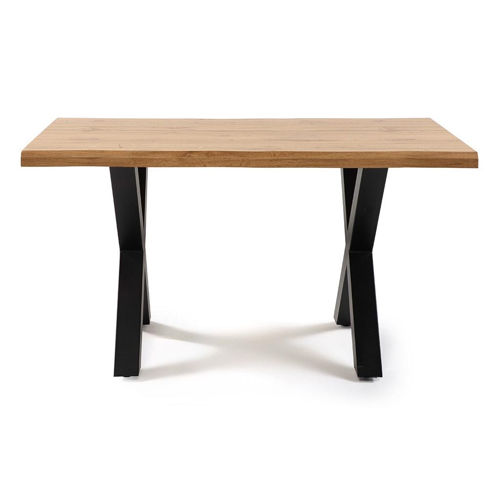 Prírodný dekor dosky s 3D štruktúrou pripomína masívne drevo a nepravidelná hrana dodáva stolu autentický charakter. K tomu