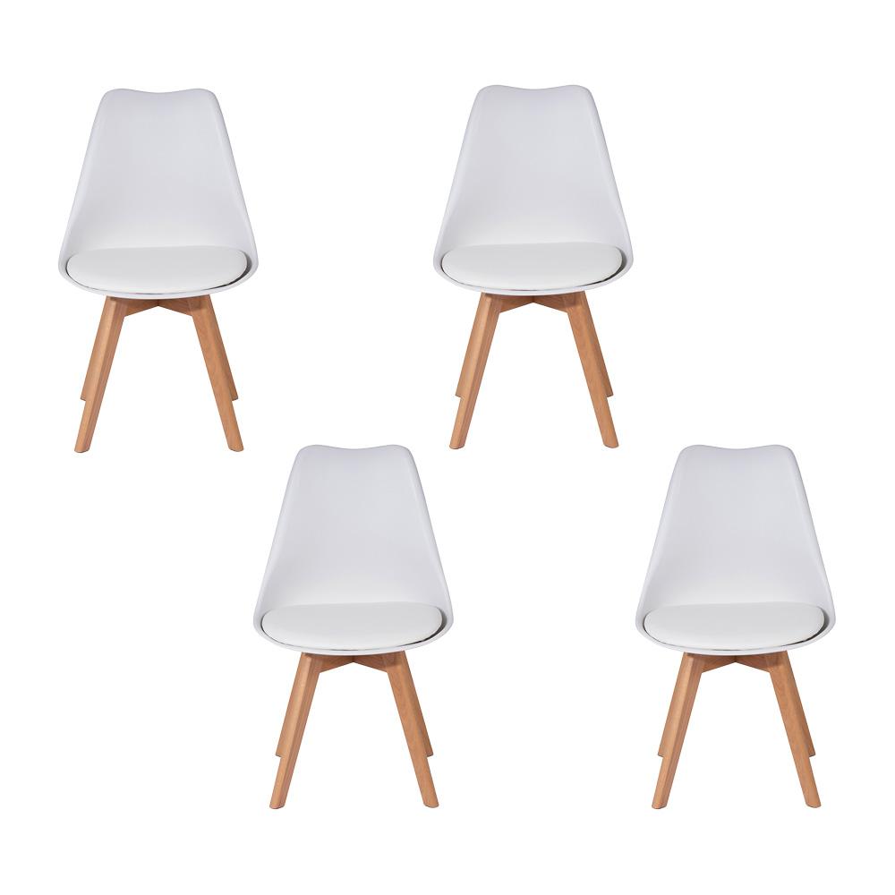 Set 4 ks jedálenských stoličiek SKANDI biela – jednoduchý škandinávsky dizajn, ktorý je krásny, praktický a ľahko kombinovateľný.