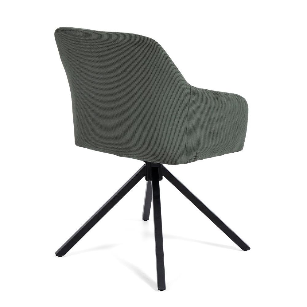 manšestrový poťah v olivovo zelenom odtieni dodá interiéru útulný, prírodne ladený akcent. Čierna kovová podnož pridáva stabilitu aj čistý moderný vzhľad.