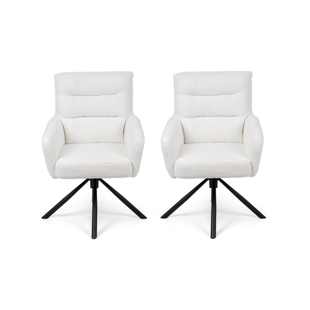 Mäkké bouclé, otočný komfort a elegantný tvar – stolička, na ktorej sa sedí ako v kresle.