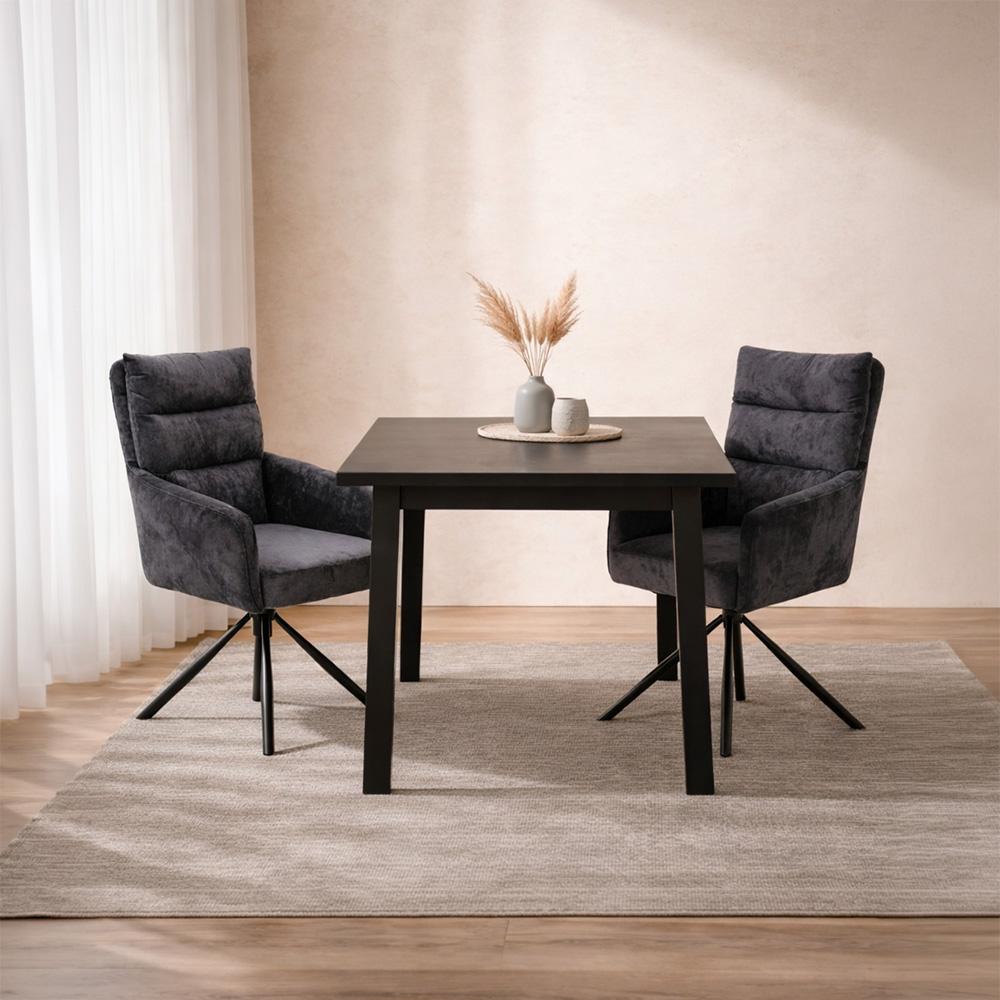 Tmavosivý látkový poťah dodá interiéru nadčasový a elegantný vzhľad, čierna kovová podnož pridá stabilitu aj moderný kontrast. Vďaka