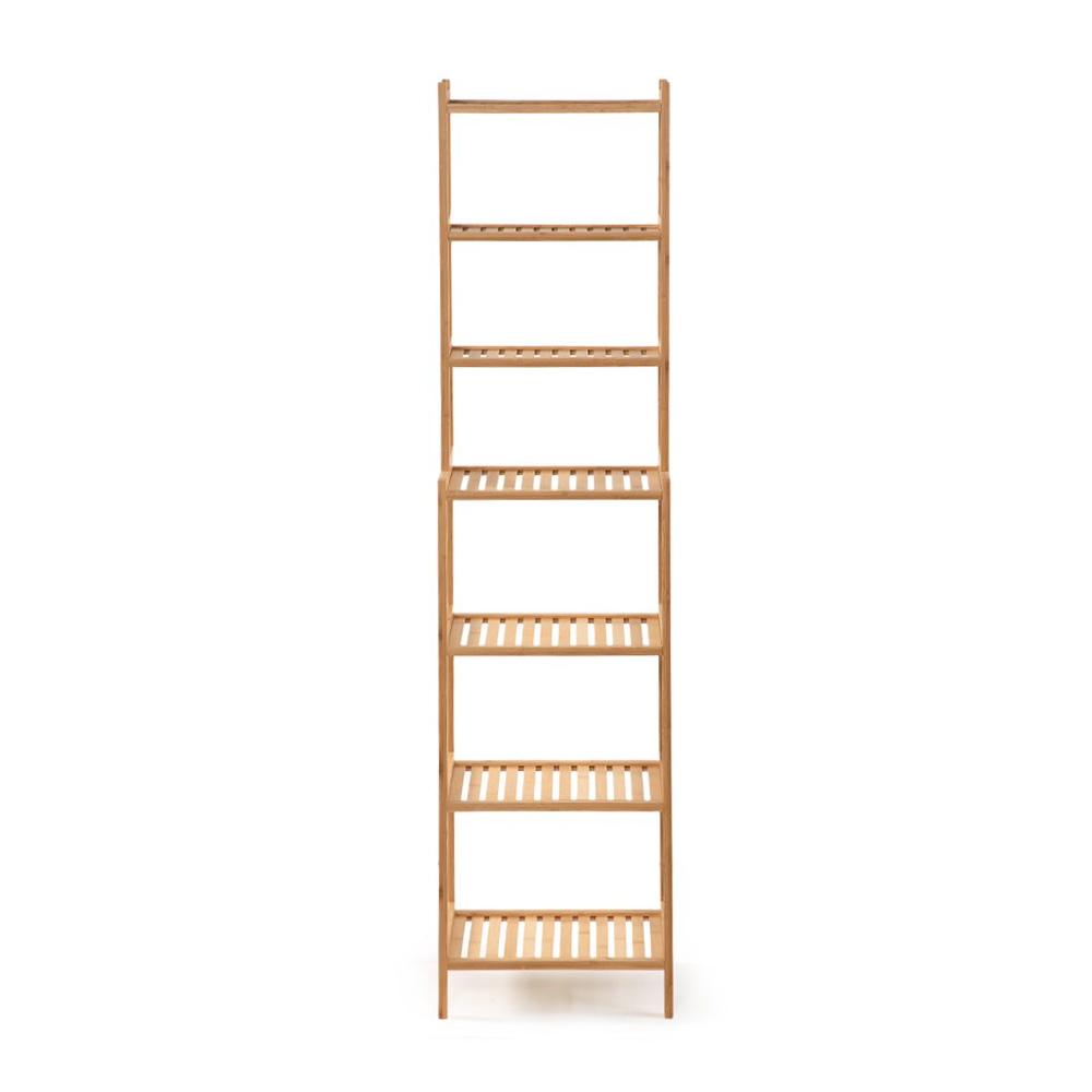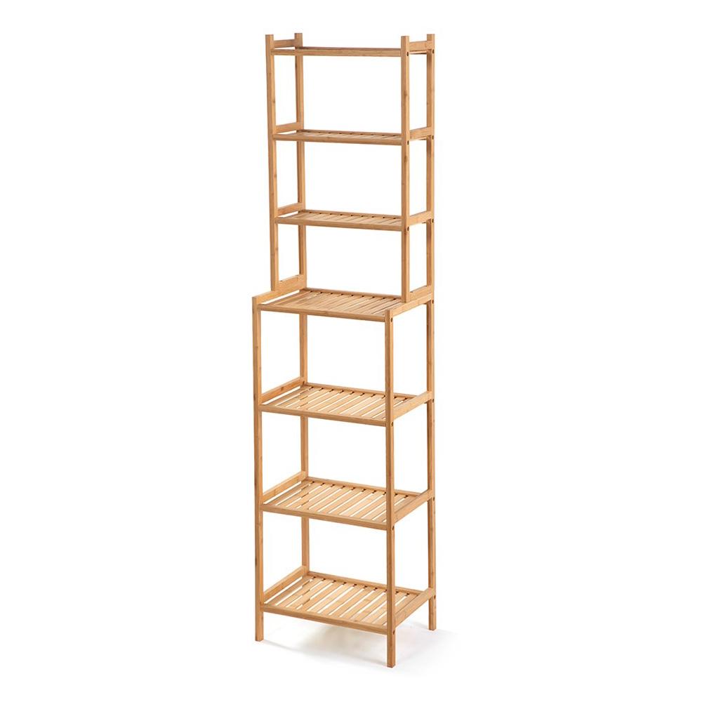 Vysoký bambusový regál so 7 policami, ktorý urobí poriadok aj v malom priestore – ideálny do kúpeľne.
