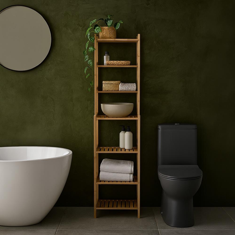 Bambusový regál AVENBERG BAMBU 7 – štíhly, praktický a krásne prírodný pomocník do kúpeľne aj domácnosti.