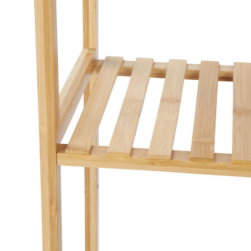 15 mm) doplneného o bambusové lamely. Vďaka tomu pôsobí vzdušne, ale zároveň je stabilný a vhodný na každodenné používanie. Päť priestranných políc vám pomôže udržať poriadok v kúpeľni aj domácnosti – uteráky, kozmetika, košíky alebo dekorácie budú vždy prehľadne na svojom mieste.