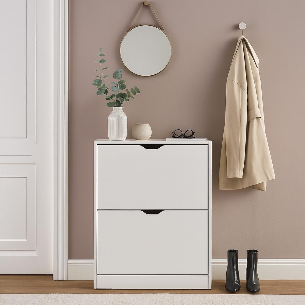 Botník v bielej farbe je skvelé riešenie do predsiene, chodby alebo bytu, kde chcete upratať obuv, ale nemáte priestor na hlbokú skriňu. Vďaka