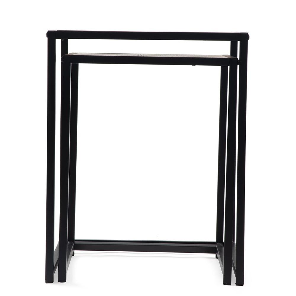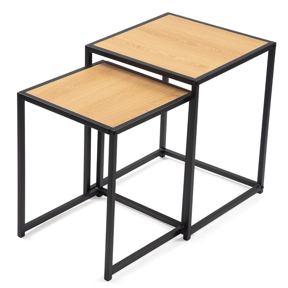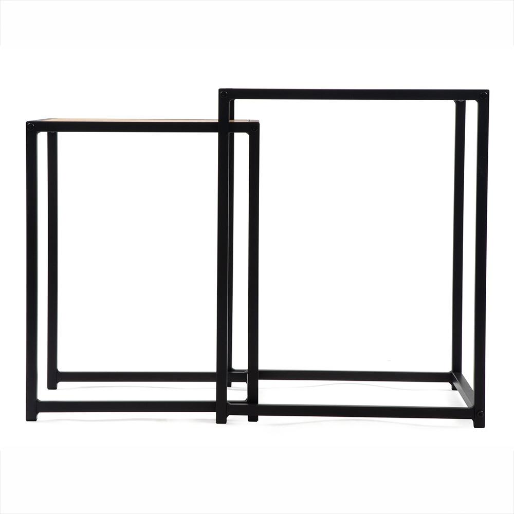 čiernou oceľovou konštrukciou. Vďaka dvom veľkostiam ich môžete používať vedľa seba, samostatne, alebo menší zasunúť pod väčší a ušetriť miesto. Ideálne k sedačke, do čítacieho kútika aj do menšieho bytu.