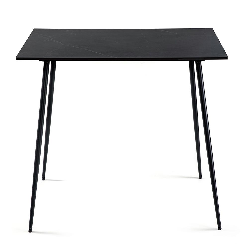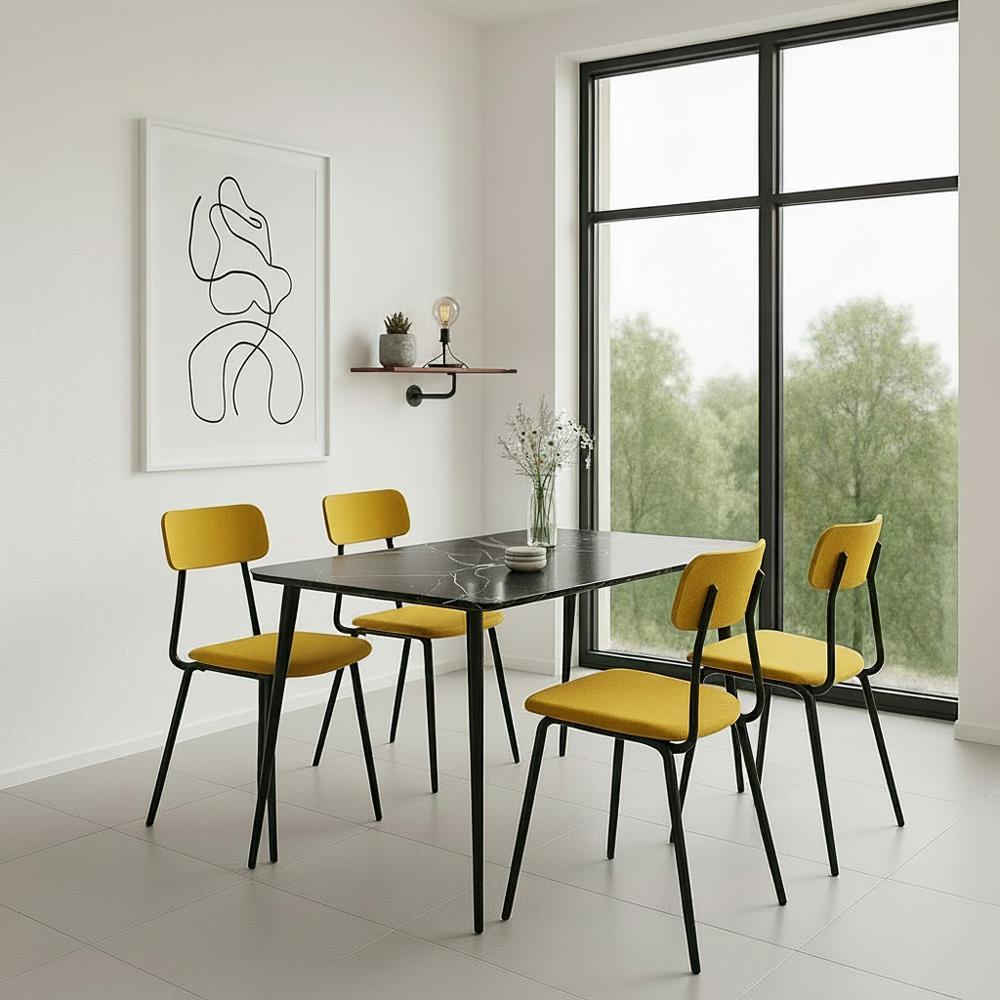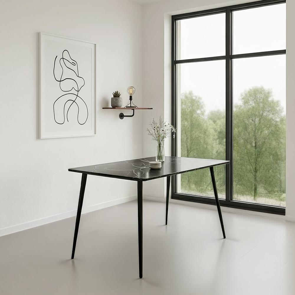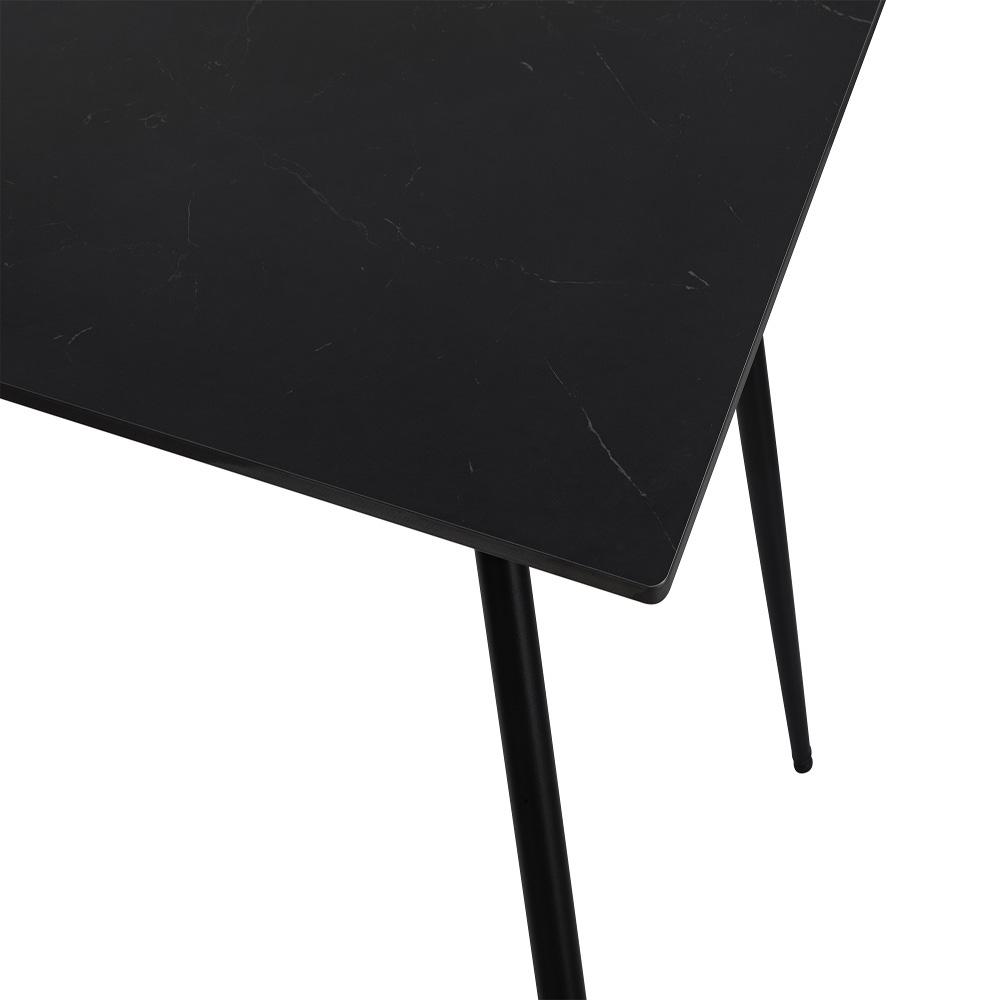 Moderný jedálenský stôl s čiernou keramickou doskou v mramorovom dekore – elegantný vzhľad, vysoká odolnosť a stabilita.