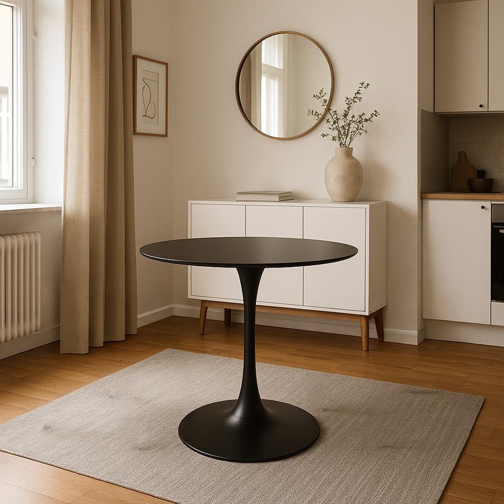 kovovej centrálnej podnoži je stôl stabilný a zároveň ponúka viac miesta na nohy než klasické štyri nohy – ideálny do menšej kuchyne, jedálenského kúta aj kaviarenského priestoru.