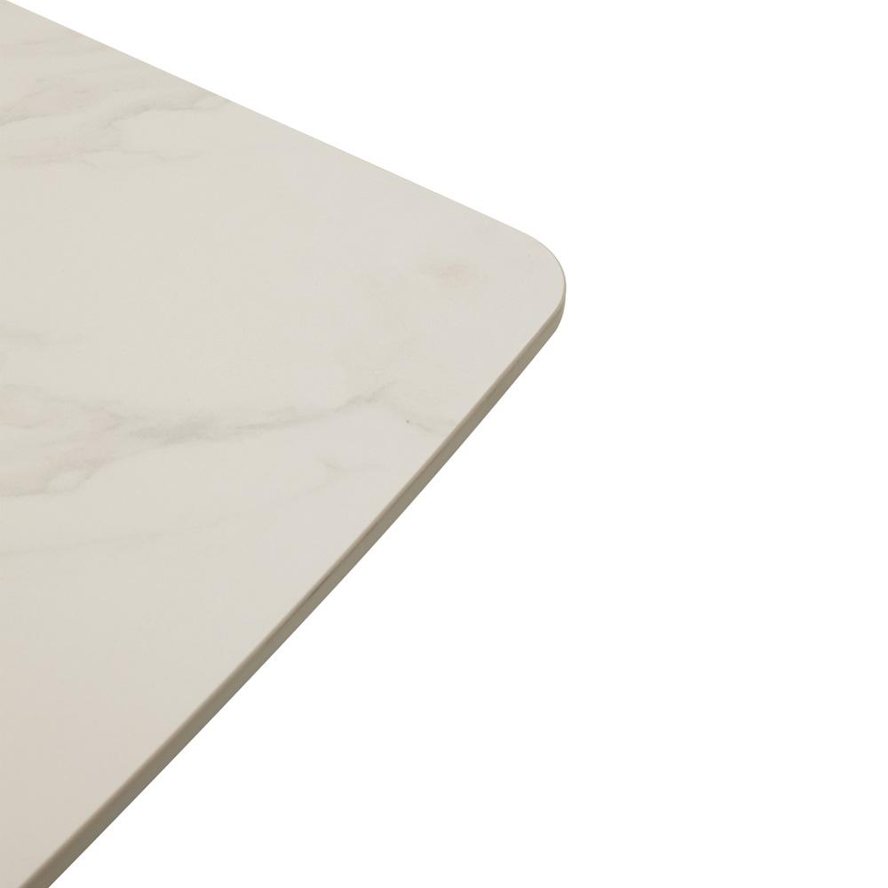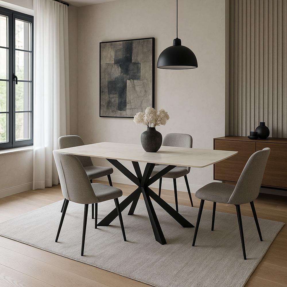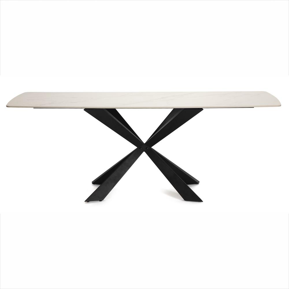 Jedálenský stôl AVENBERG Atlas – veľkorysý rozmer 200 × 90 cm, biela kamenná doska s mramorovým dekorom a stabilná čierna oceľová podnož.