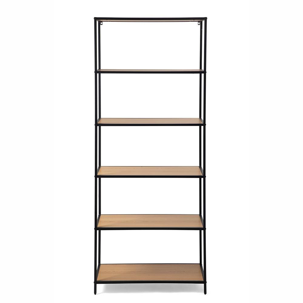 Regál AVENBERG ARCANA CLASSIC 185 × 77 cm – pevná oceľová konštrukcia a police v prírodnom dekore duba na štýlové a praktické uloženie vecí.