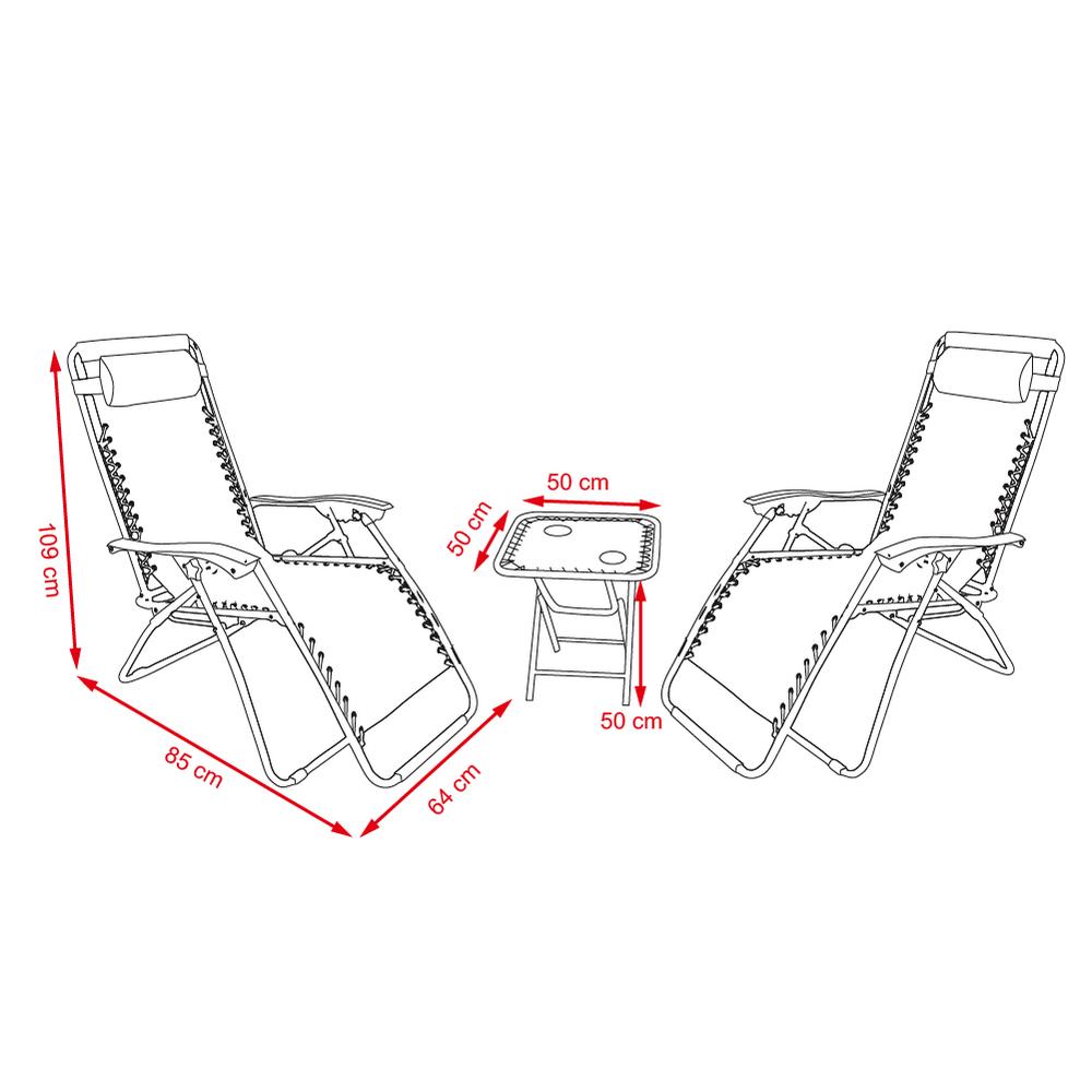 Kreslá sa ľahko prispôsobia vašej ideálnej pozícii pre relaxáciu vďaka hladkej funkcii polohovania, či už si chcete čítať, opaľovať sa alebo si len užívať pokoj. Vďaka svojmu modernému dizajnu a robustnej kovovej konštrukcii v čiernej farbe, doplnenej odolným polyesterovým čalúnením v šedej, sa budú skvele vynímať na každom balkóne, terase alebo v záhrade.