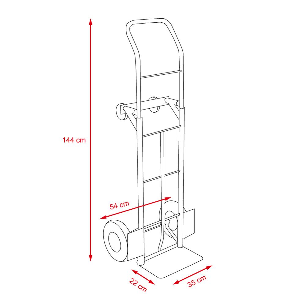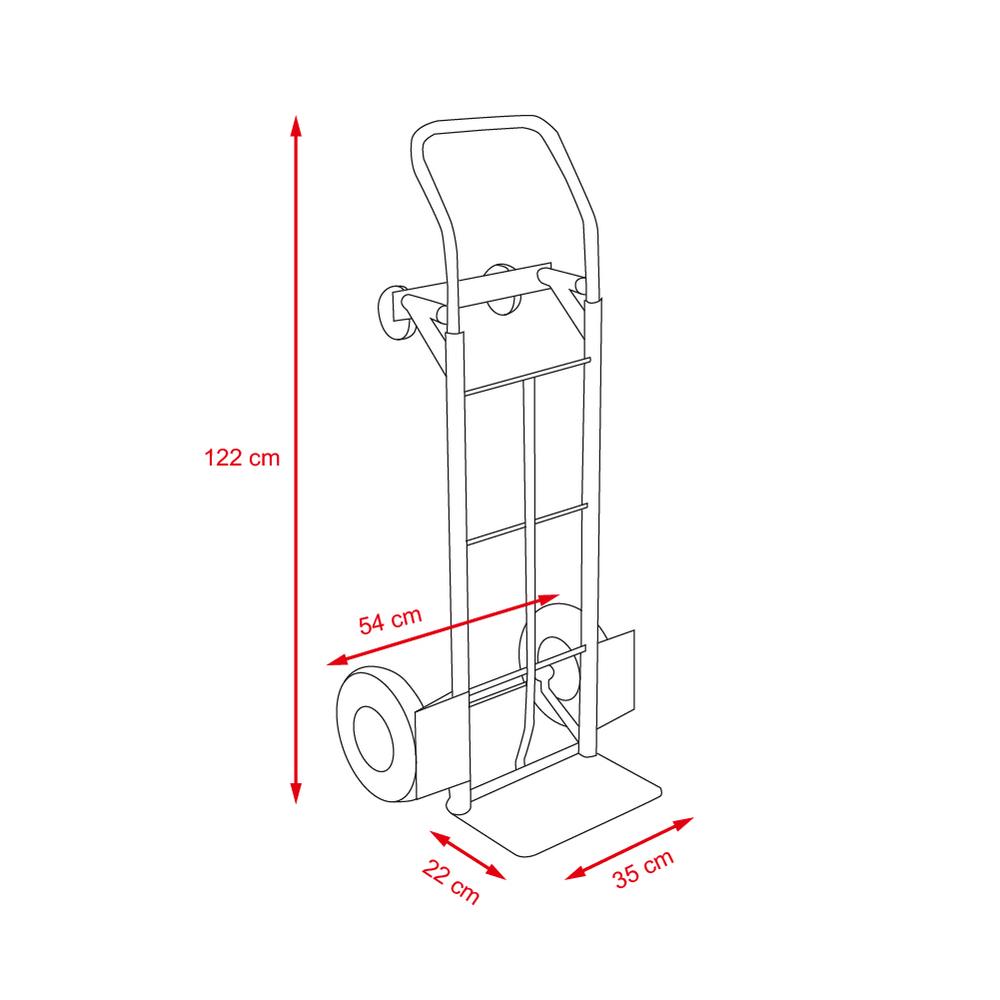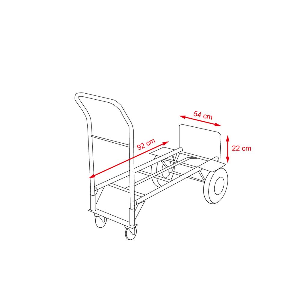 Veľké nafukovacie pojazdové kolesá a malé otočné kolieska zaisťujú ľahkú manipuláciu pri každom použití. Oceľová konštrukcia lakovaná v červenej farbe garantuje dlhú životnosť a odolnosť pri každodennom používaní. Vozík